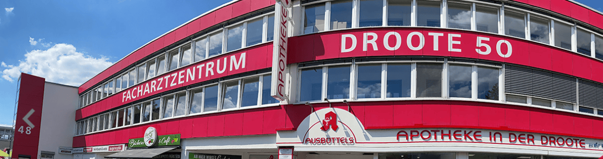 Das Facharztzentrum Droote vereint unterschiedliche Fachrichtungen unter einem Dach. Neben modern ausgestatteten Praxen finden Sie auch Apotheke, Bäckerei und Optiker – alles für Ihre Gesundheit und Ihr Wohlbefinden.